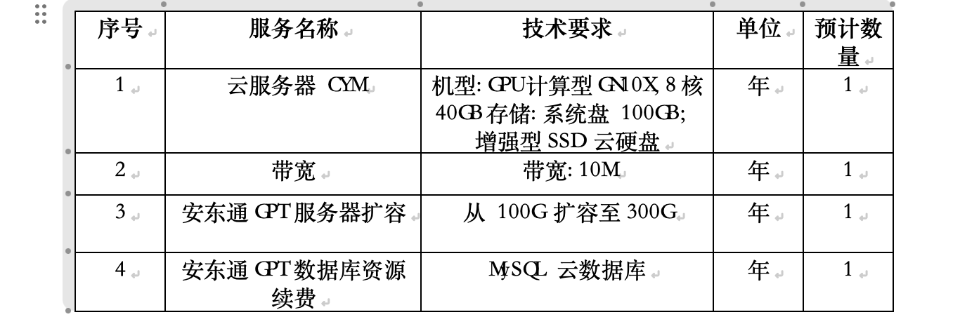1、项目名称:人工智能研究院__安东通GPT服务器+数据库续费采购